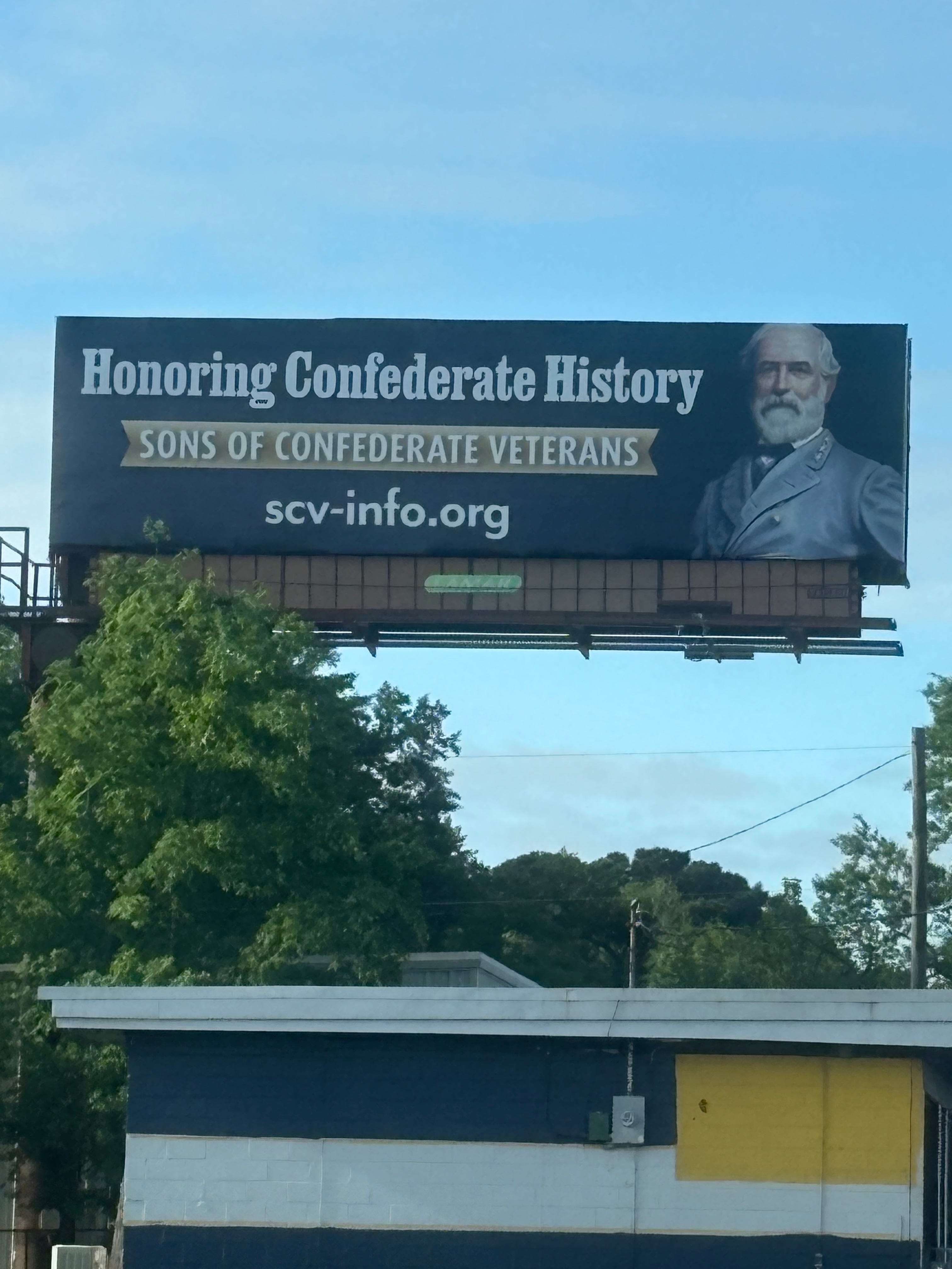 I was incensed! I snapped this photo, called the billboard company to complain, and posted in my local Facebook group something like, “Does anyone want to protest this billboard with me? Confederate history should be taught but not celebrated or honored!”
